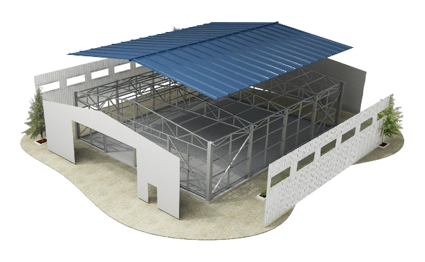 собирается из быстромонтируемых гнутых высокопрочных оцинкованных профилей на болтовых соединениях круглогодично в любую погоду.
