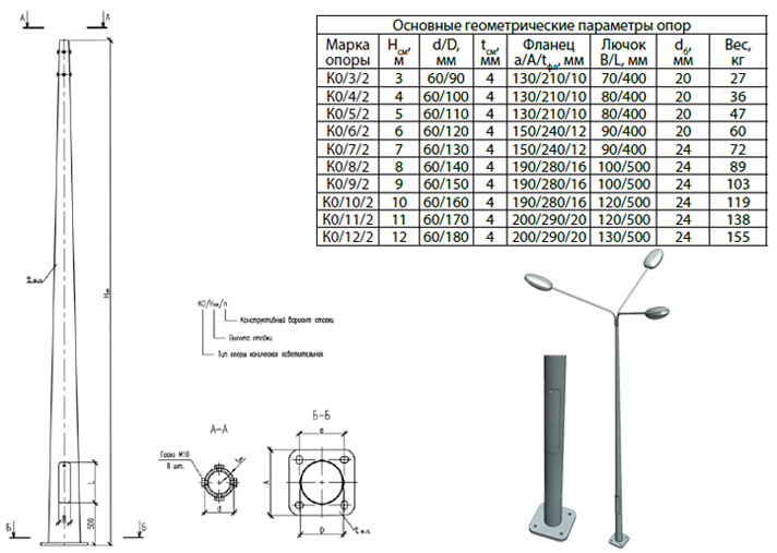 Интересно! Если столб используется в качестве опоры, то его особенность – большая высота. Длина изделий составляет 3; 3,5 метра. Высота электрических столбов-опор – 5000 мм, 6000 мм, 7000 мм или 8000 мм (максимум – 12 метров).