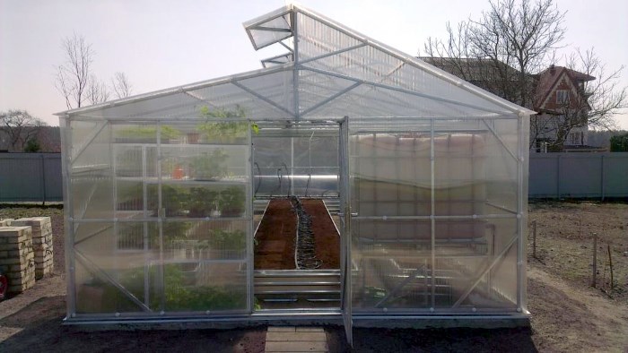 Дана модель більш стійка до снігових навантажень. З даху такої форми сніг скочується під власною вагою, в ній зручно монтувати кватирки. Інші переваги двосхилим теплиці: