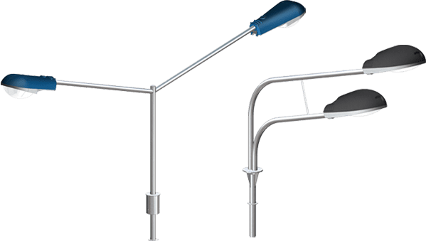 За конструктивними особливостями оголовники на опори зовнішнього освітлення класифікуються на кілька типів: