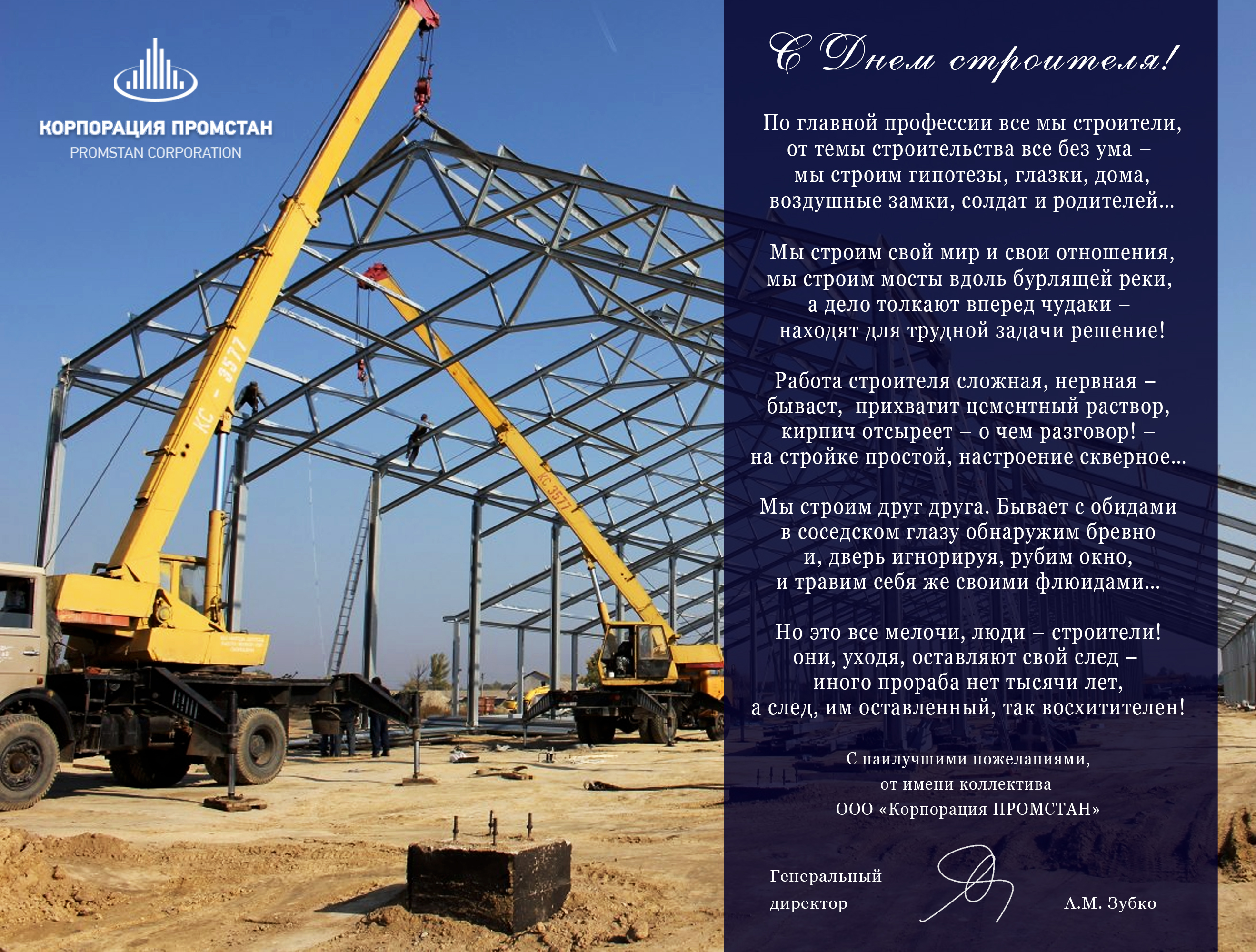 Корпорація "Промстан" вітає своїх партнерів з Днем будівельника!