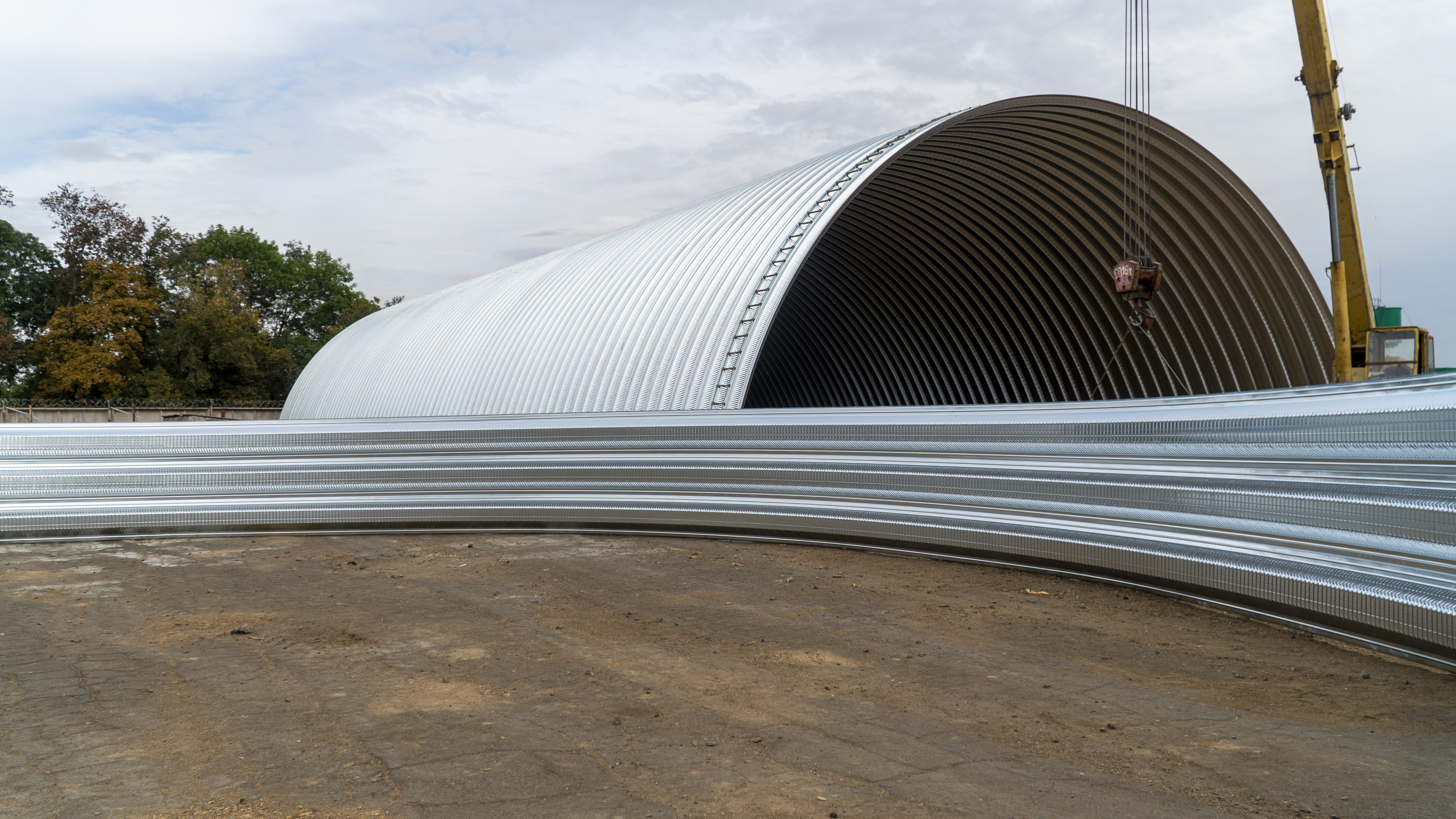 Корпорація Промстан закінчила будівництво бескаркасного ангара.