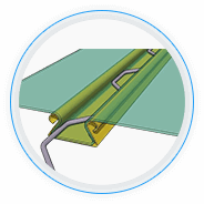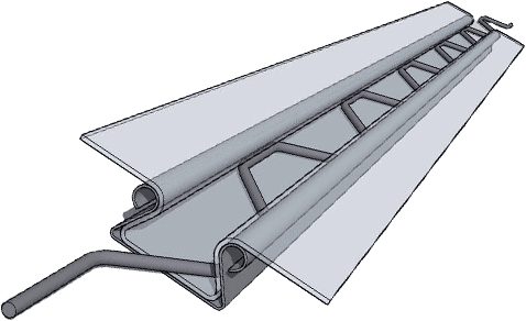 2. Пленку уложить в профиль (клипс), затем плавными движениями завести прижимную оцинкованную пружину в оцинкованный корпус (клипс).